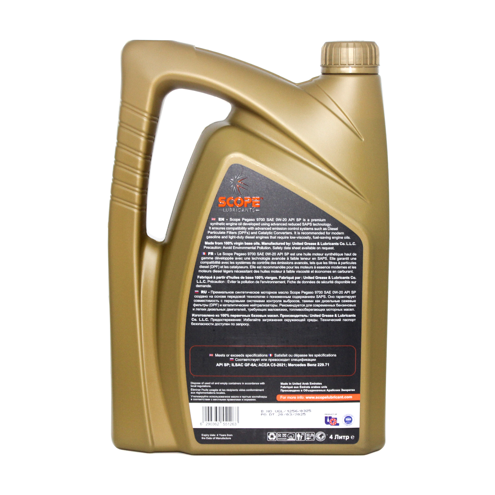 Масло моторное SCOPE Pegaso 9700 FS GEO SAE 0W20 C5 4л